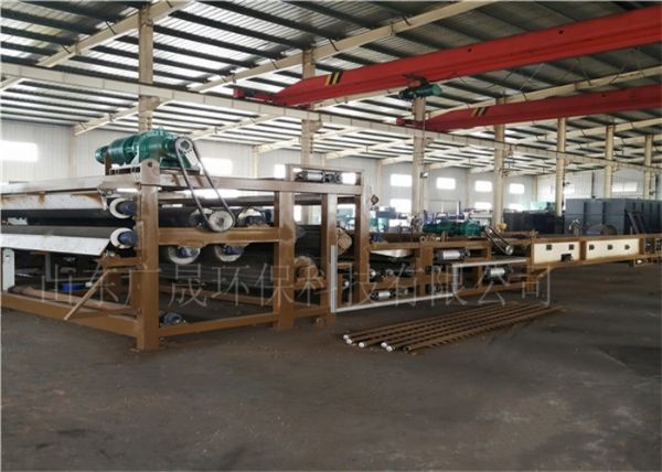 在重力的作用下自由水透過濾網背面而滲出分離,形成不流動狀態的泥漿,達到壓榨脫水區實施較大壓力條件,然后隨著網帶的移動而夾持在上下兩條網帶之間,經過具有可調張緊力的過濾帶及直徑逐漸遞減的轉輥和對壓輥,實施連續增加的緩慢的對輥擠壓力、剪切力作用。