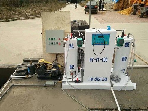 (4)消毒:醫(yī)院污水中含有大腸桿菌超標,因此在污水排放前必須加以消毒,有效的殺菌工藝是二氧化氯消毒,二氧化氯發(fā)生器以鹽酸和氯酸鈉為原料,采用負壓曝氣工藝,生產(chǎn)以二氧化氯為主,氯氣為鋪的復(fù)合消毒液,工業(yè)鹽酸應(yīng)符合國家標準《GB320--93工業(yè)合成鹽酸》的要求.氯酸鈉應(yīng)符合《GB1618--1995工業(yè)用氯酸鈉》的要求.